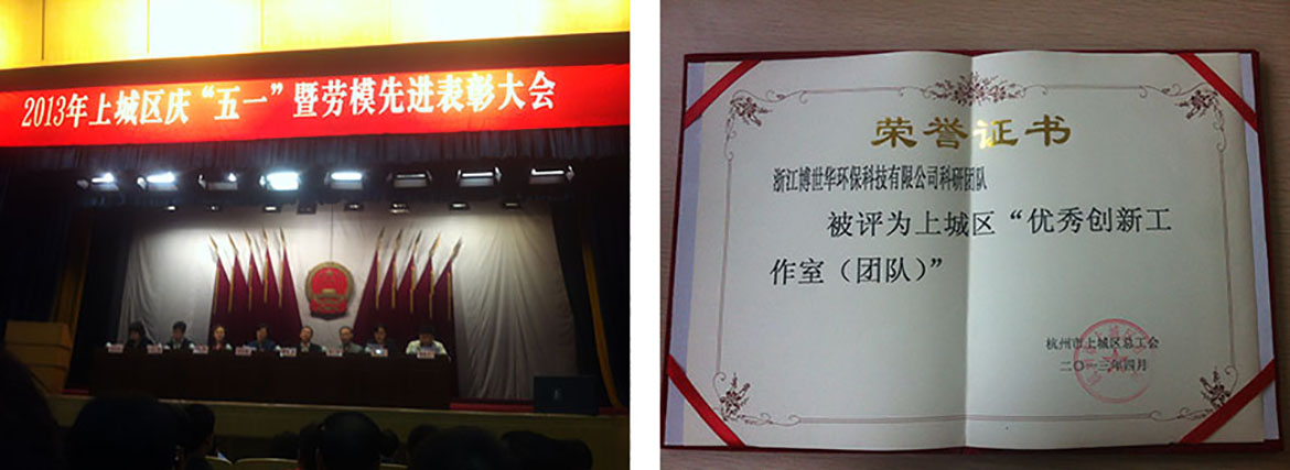 2013年4月26日,在2013年上城区庆“五一”暨劳模先进表彰大会上,杏彩体育官网注册科研团队,经申报评议,被上城区总工会授予“上城区优秀创新团队”荣誉称号。