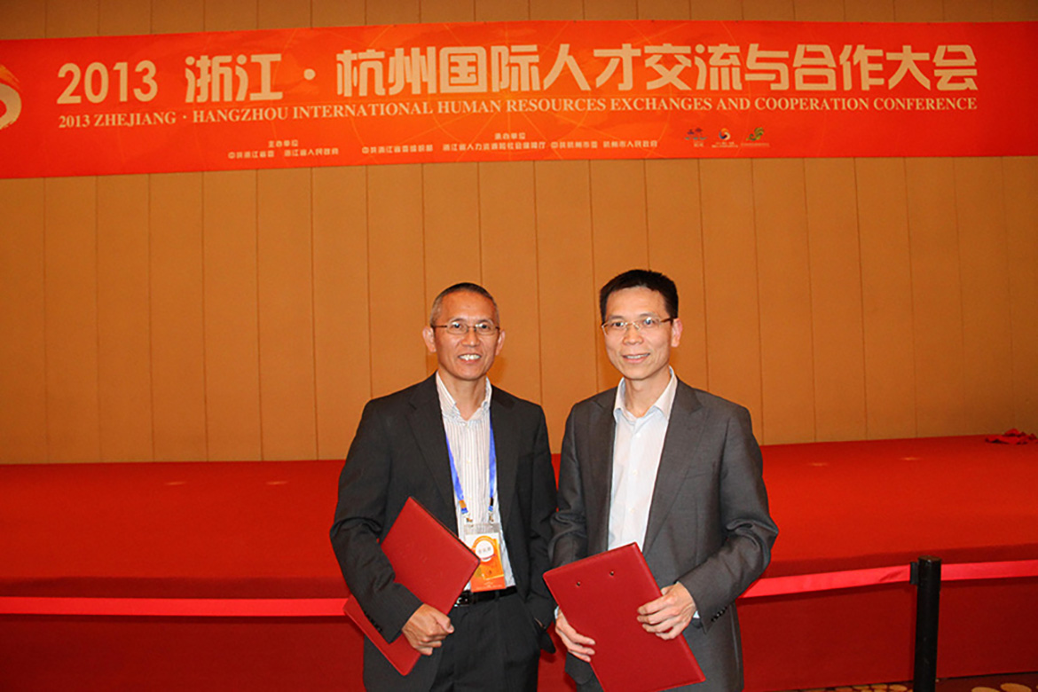 11月6日,2013浙江·杭州国际人才交流与合作大会在钱江新城隆重召开。我公司与美国金氏环保公司合作协议,作为全市三十个合作项目之一,也是上城区唯一的项目,在大会上签订。常务副总经理王卫民代表杏彩体育官网注册公司与金氏环保公司董事长金博士在签约仪式上交换了合作协议,浙江省组织部副部长、省委人才办主任姚志文等省市领导见证了这一时刻。
