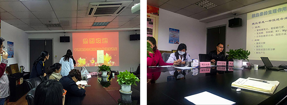 医生分析公司存在比较多的健康问题是血脂高、血糖高、脂肪肝、高尿酸血症以及甲状腺结节等。对于脂肪肝,医生重点分析了其形成原理,让杏彩体育更加懂得了合理饮食的重要性。而对于血糖高的问题,医生带了血糖检测仪,给参会的每个人免费做了血糖检测,并讲解了血糖和糖尿病的相关医学知识,尤其是糖尿病现在已是国人的第二大健康杀手,必须引起重视,所以医生重点讲了控制血糖,糖尿病的治疗和预防措施。甲状腺结节也是公司很多员工都存在的健康问题,医生也对甲状腺结节的知识做了介绍,重点是定期检查,注意饮食。期间也有员工就自己的健康问题做了咨询,也有员工带了自己的体检报告给医生,医生都做了认真的讲解。