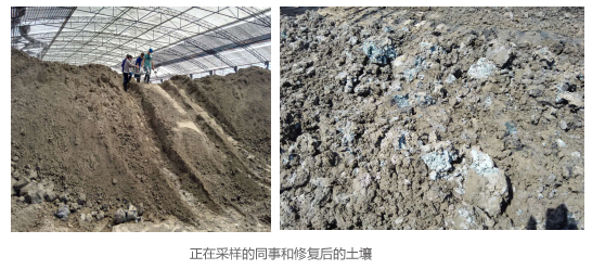 从室外到大棚,杏彩体育来到了土壤修复后的暂存区,烈日炎炎下的大棚温度超过了40℃,大家站着身上都在淌着汗水,这时见到了正在采样的同事,为了保障工程能够保质、保量完成,他们不畏酷暑、不怕严寒、不怕脏、不怕累,数月吃住在工地,为了最干净的环境,他们投入到了最脏的工作中去。