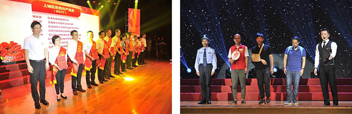 为迎接党的96岁生日,2017年6月30日上午,由中共杭州市上城区委员会主办的上城区庆祝中国共产党成立96周年暨第四届“草根名师”讲堂在上城区政府3楼大礼堂隆重举行。区委对先进基层党组织、优秀共产党员、优秀党务工作者进行了表彰,整台盛会通过《担当职责》、《奉献之美》、《向你看齐》与《创新之力》四个篇章,弘扬了普通党员甘于奉献、全心全意为人民服务的崇高精神。
