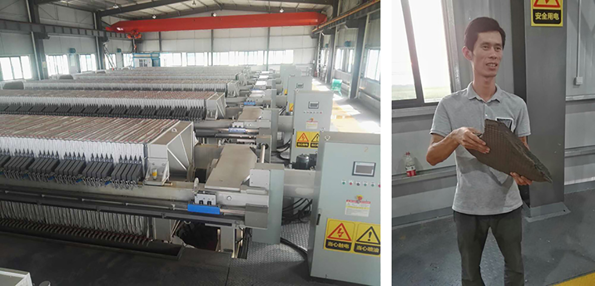 18:00成型的泥饼从滤板间脱落,26小时的分娩,痛并快乐着,那乌黑晶莹的泥饼,就如一位新生产儿,宣告自己的惊艳全场,业主捧起了泥饼,笑得比屋外的烈日还要灿烂,“我太高兴了,感觉像生了个儿子”。