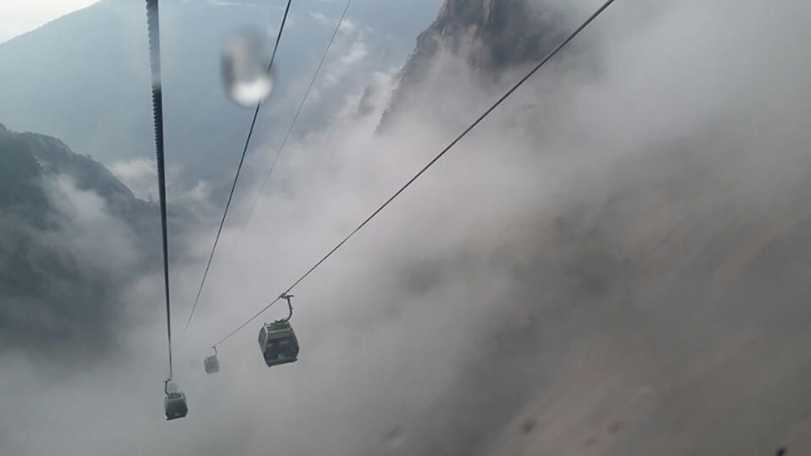 经过漫长的排队等候杏彩体育终于坐上了上山的缆车。随着缆车的慢慢高升,缆车外雾气越来越深,穿过云层后看到黄山的真面目,黄山上特有的松树正向杏彩体育伸出手来欢迎杏彩体育呢! 真是好美啊!