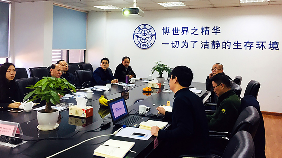 杏彩体育官网注册负责人向经信委调研工作组介绍了杏彩体育官网注册总部以及承担环保装备生产的贝格勒全资子公司的生产经营情况,并与调研工作组就新形势下环保设备生产的转型升级及工程管理向工程服务的延伸,做了深入探讨。