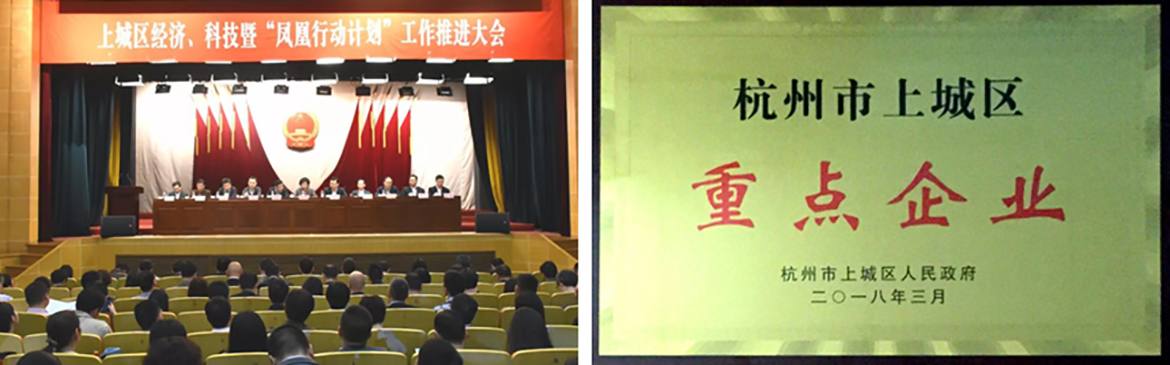 在大会上,上城区政府领导对上城区重点企业进行了表彰并授予奖牌,杏彩体育官网注册喜获2017年度杭州市上城区重点企业。