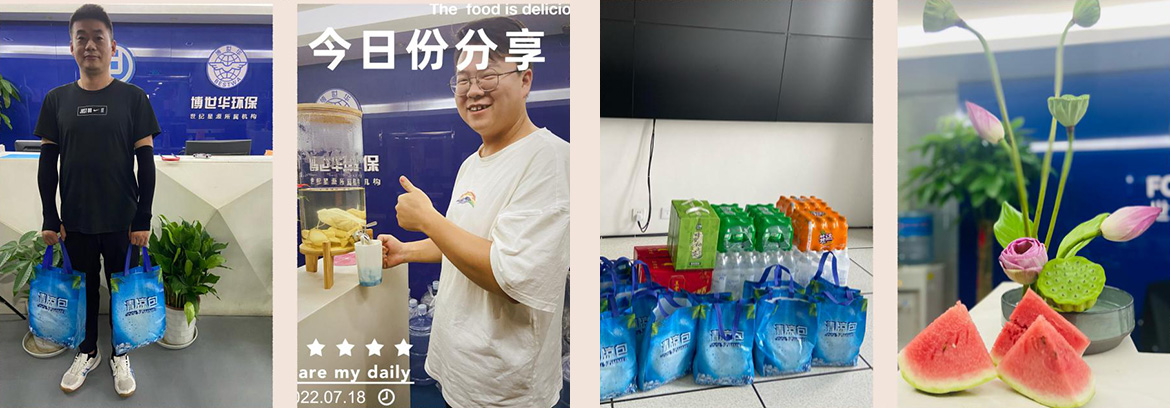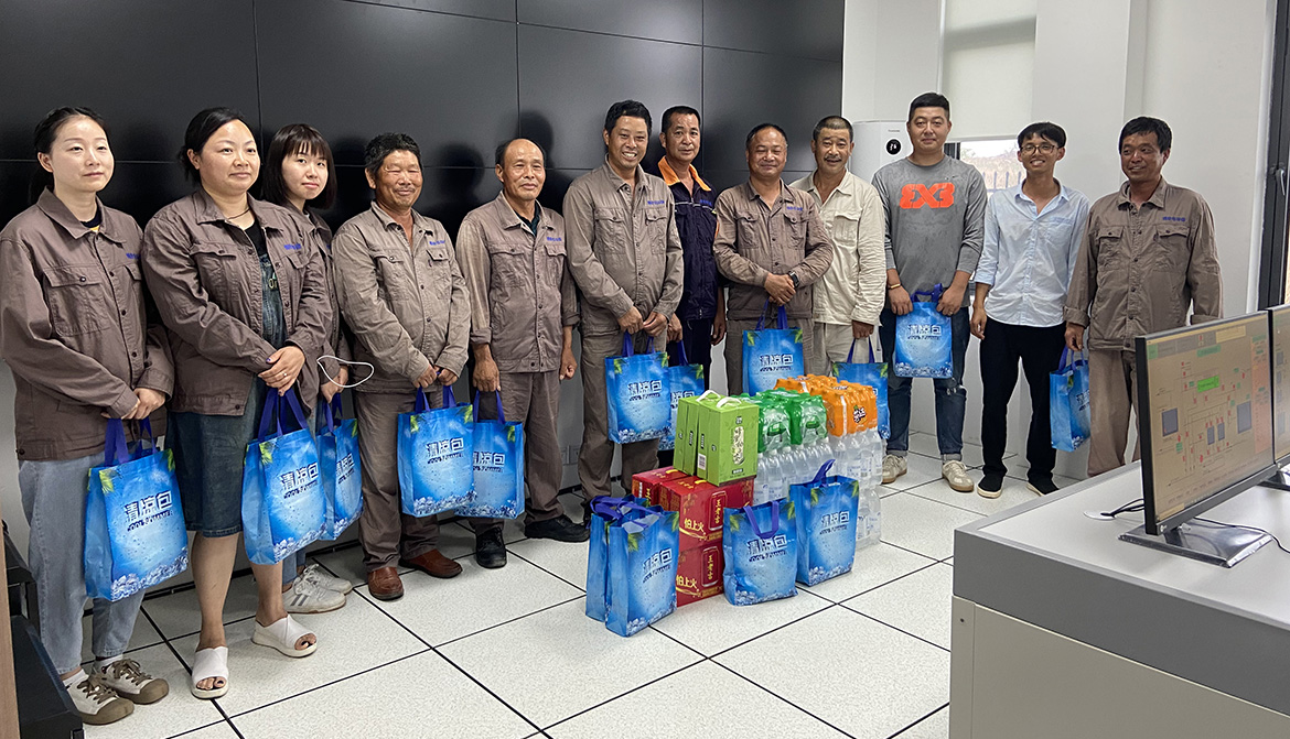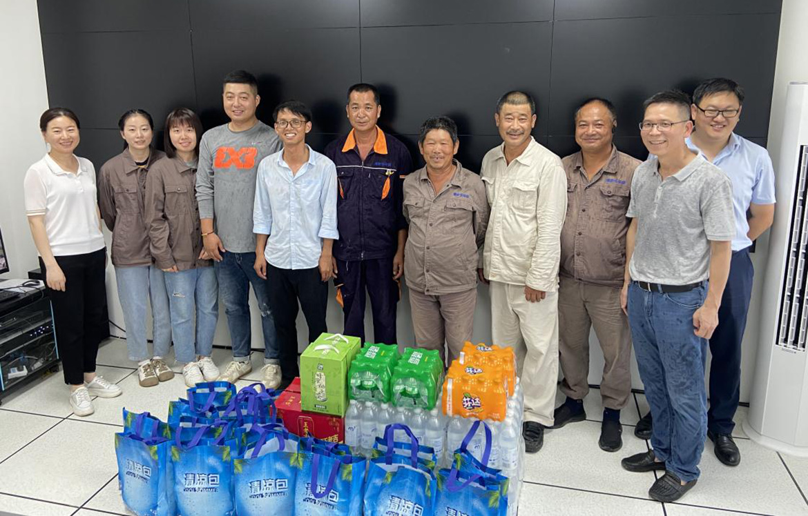 近期气温居高不下,室外温度已超40°,为了更好地让员工开展日常工作,关爱员工的生活与工作。党支部书记、董事长王卫民、工会主席张莉及中层干部代表给一线员工带去问候,让大家感受公司浓浓的关怀和夏日里的清凉。
