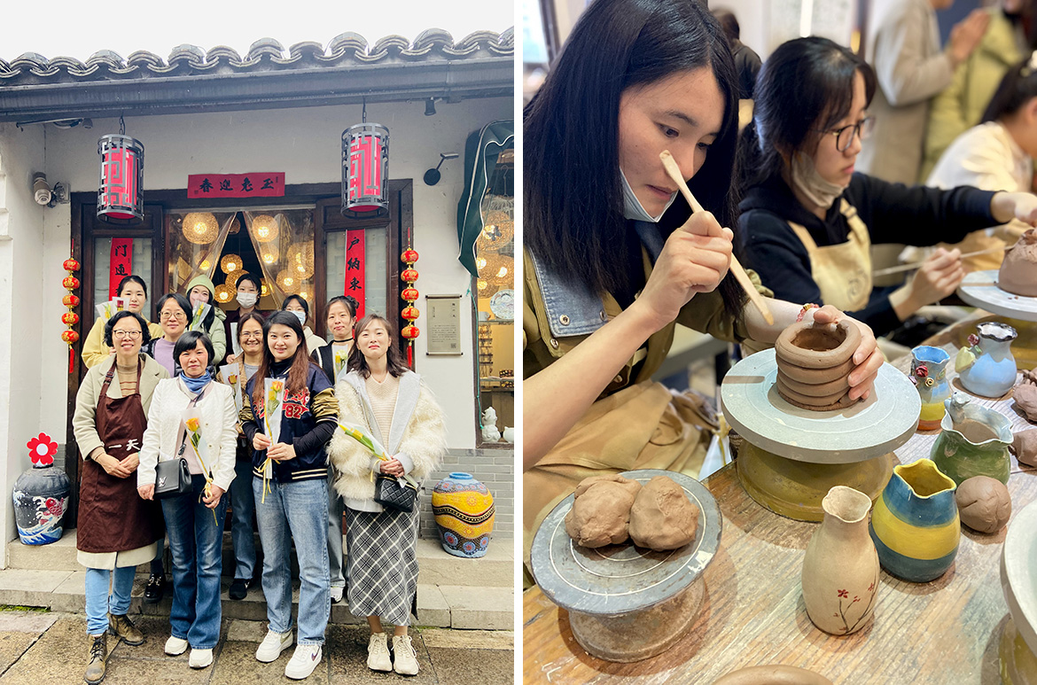 大运河贯穿南北,它南越长江,流经江苏、浙江。北越黄河,流经鲁冀,烟波浩渺几千里。这是与横贯东西的万里长城并称于世的伟大奇迹。仰望,晴空万里,京杭大运河如飘荡的碧玉带,机动船破浪航行。两岸,杨柳在迎着春风吐翠,水面波光粼粼,古色古香的小河直街人山人海。值此三八国际妇女节,在这个被“宠爱”的日子里,公司工会组织全体女员工“品运河文化,做手工陶艺”活动。忘却烦恼记录运河沿途的春日美景,亲手制作属于自己的陶艺作品,心情随春天一同苏醒。